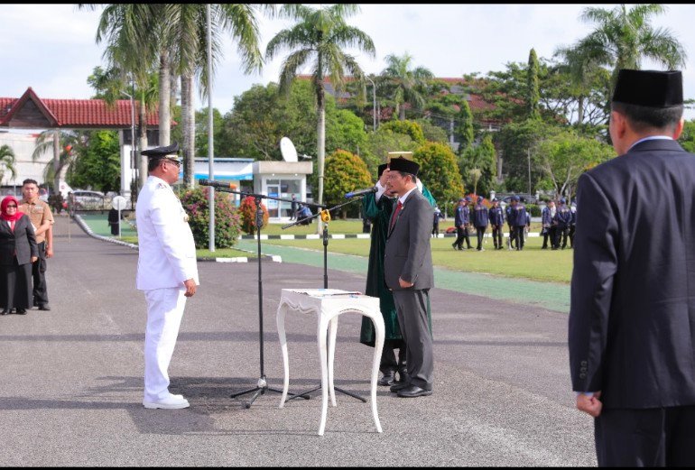 BFC, PANGKALPINANG – Usai menjadi inspektur upacara peringatan Hari Otonomi Daerah XXVIII Provinsi Kepulauan Bangka Belitung (Kep. Babel), Penjabat (Pj) Gubernur Kep. Babel Safrizal ZA melantik Fery Afriyanto sebagai Pj Sekretaris Daerah (Sekda) Kep. Babel, di Halaman Kantor Gubernur Kepulauan Bangka Belitung, Senin (29/4/24).