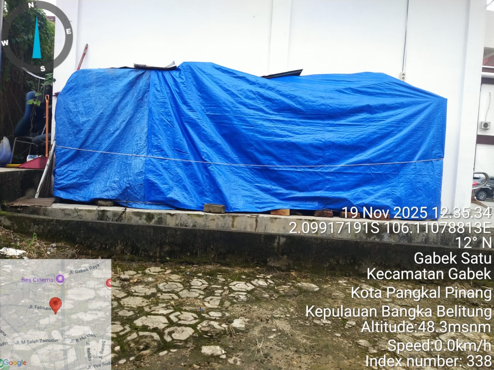 Sudah lebih dari satu tahun terakhir hanya terletak di depan gudang percetakan Pelat BN tersimpan di luar gudang UPTD Samsat Pangkalpinang dalam kondisi terselubungi dengan terpal berwarna biru, terpapar panas dan hujan.