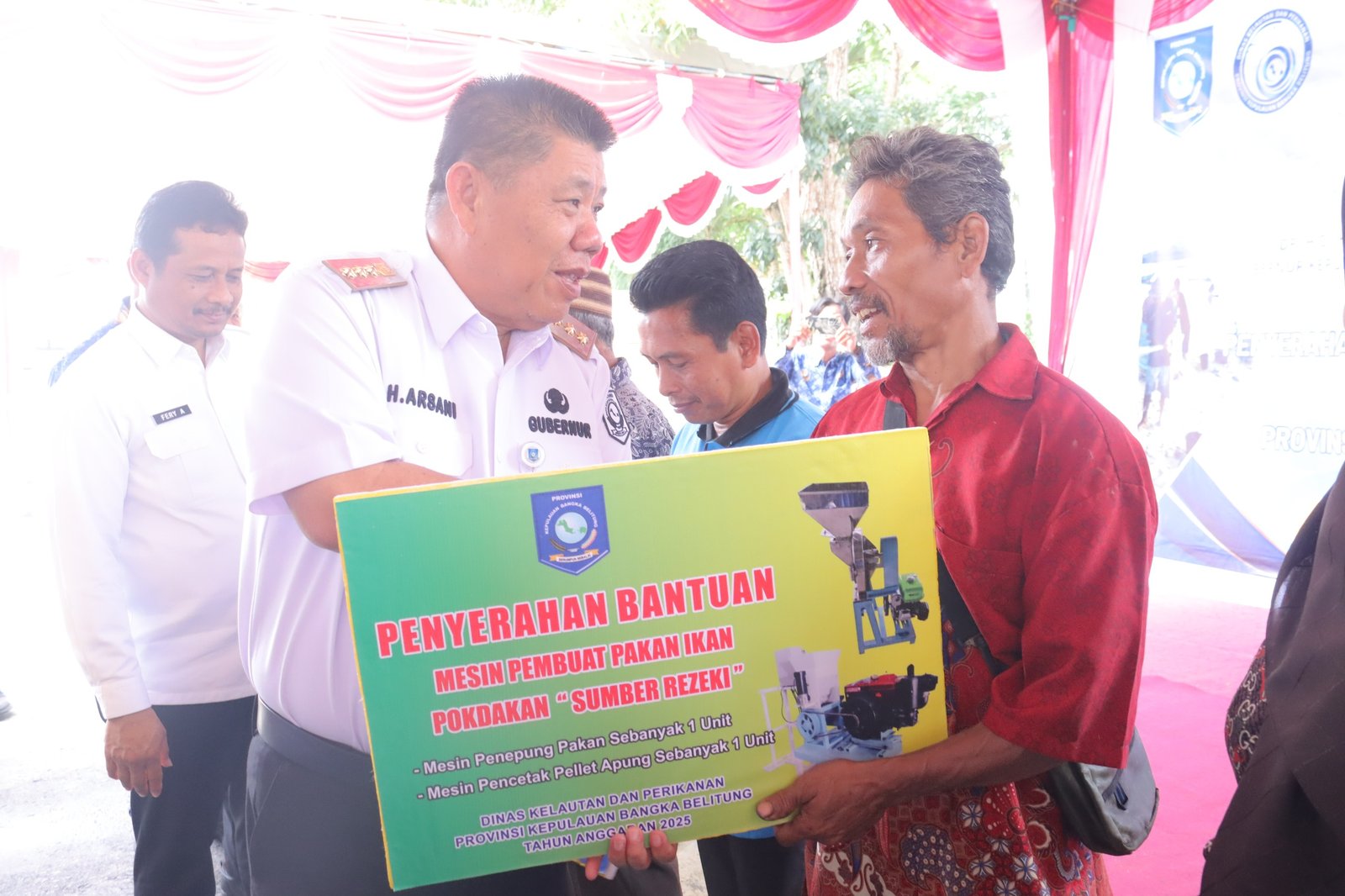 BFC, PANGKALPINANG – Sebagai wujud dukungan Pemerintah Provinsi Kepulauan Bangka Belitung (Babel) agar laju perkembangan usaha dan pertumbuhan ekonomi semakin pesat, Gubernur Babel Hidayat Arsani memberikan bantuan kepada Koperasi Nelayan, Kelompok Budidaya Ikan (Pokdakan), Kelompok Pengolah dan Pemasar Hasil Perikanan (Poklahsar) Tahun 2025.