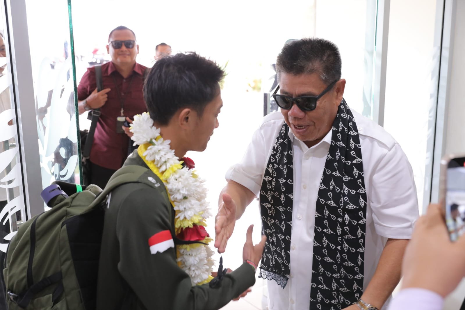 BFC, BELITUNG – Gubernur Kepulauan Bangka Belitung (Babel) Hidayat Arsani, menyambut hangat kedatangan Robi Syianturi atlet berprestasi peraih medali emas Sea Games Thailand 2025 di VIP Bandar Udara Internasional H.A.S. Hanandjoeddin Tanjungpandan pada Jumat (19/12/2025) pagi.