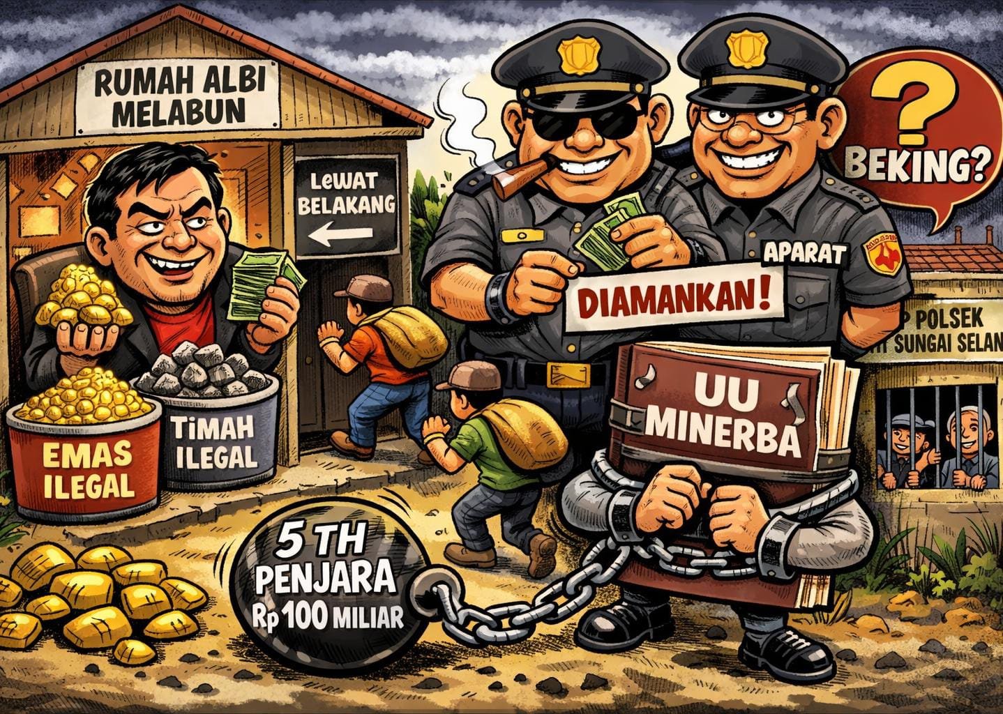 Padahal, Undang-Undang Nomor 3 Tahun 2020 tentang Mineral dan Batubara (Minerba) secara tegas mengatur sanksi pidana bagi pelaku tambang ilegal, termasuk pihak yang menampung dan memperjualbelikan hasil tambang ilegal.