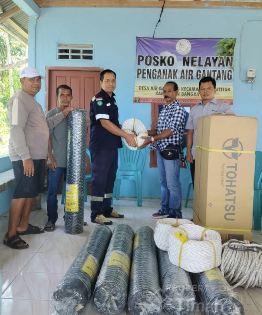 BFC, WEST BANGKA — PT TIMAH Tbk once again demonstrated its commitment to supporting the welfare of coastal communities by providing fishing equipment assistance to the Penganak Air Gantang Fishermen Group in Air Gantang Village, Parittiga District, West Bangka Regency.