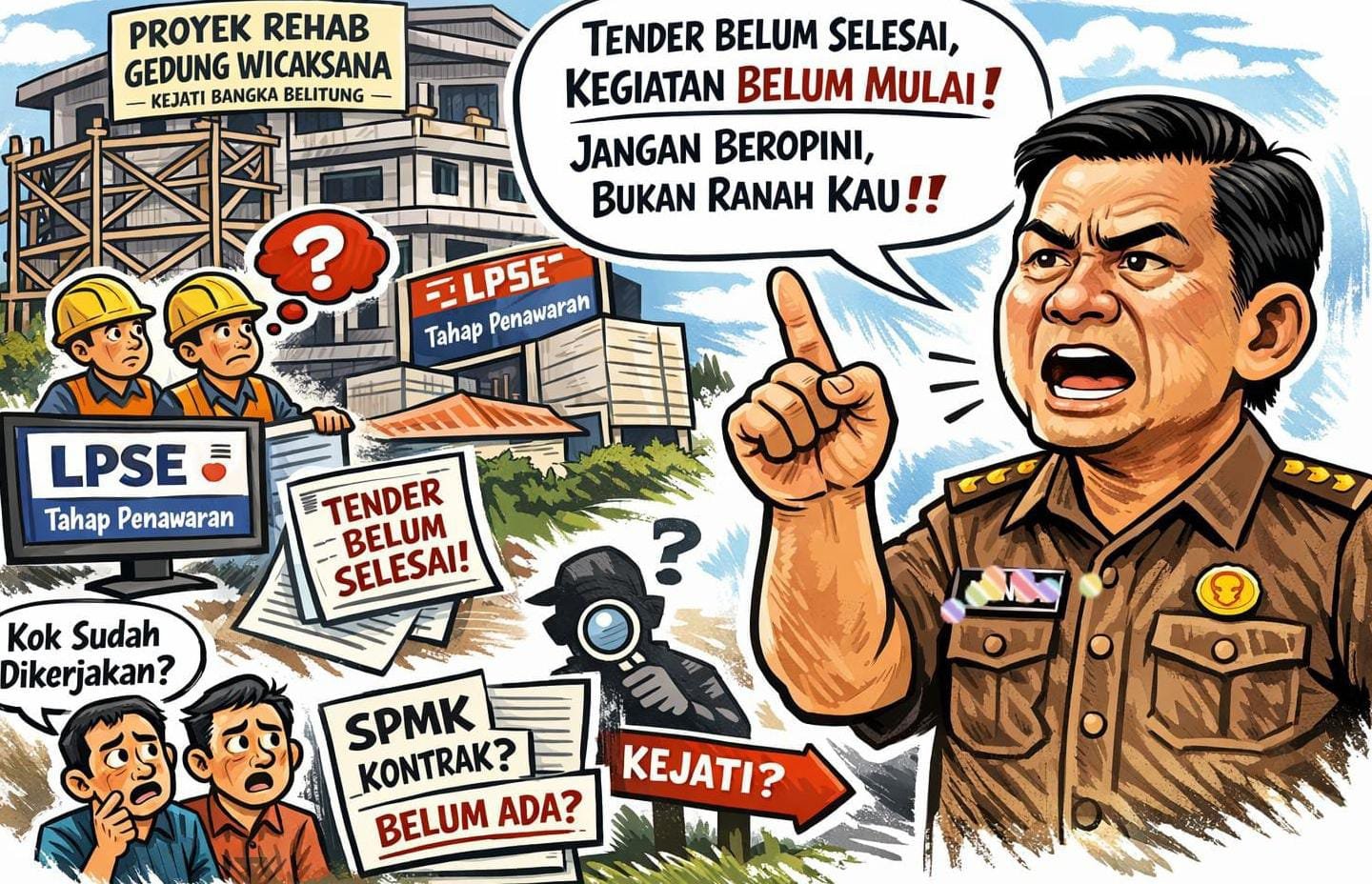 BFC, PANGKALPINANG — Polemik proyek rehabilitasi Gedung Wicaksana di lingkungan Kejaksaan Tinggi Bangka Belitung kembali memanas.